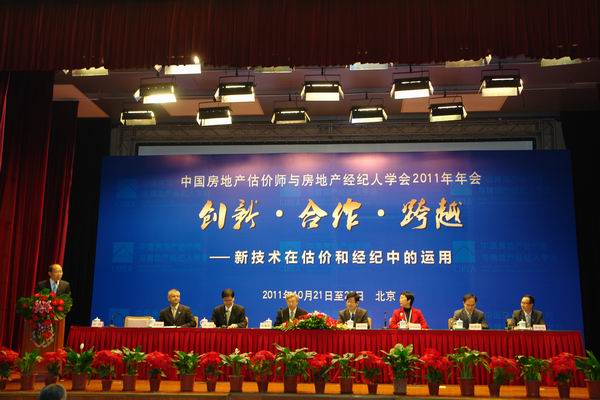 为探讨新形势下房地产估价和经纪行业发展问题,加强行业沟通交流,增强行业创新能力,我公司总经理张鑫恭于10月21日至22日在北京参加了中国房地产与房地产经纪人学会举办的2011年年会。此次年会的主题为“创新·合作·跨越——新技术在估价和经纪中的运用”。原建设部副部长、中国房地产估价师与房地产经纪人学会会长宋春华、住房和城乡建设部房地产市场监管司副司长姜万荣、香港测量师学会会长黄比、香港地产代理监管局行政总裁余吕杏茜、澳门地产发展商会常务理事长黄伟斌出席开幕式并致辞。台湾不动产估价师公会全联会创会理事长卓辉华、台湾不动产中介经纪商业同业公会全联会理事长李同荣也出席了开幕式