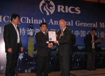 英国皇家特许测量师学会全球主席大卫·图芬为我公司总经理张鑫恭颁发资格会员证书