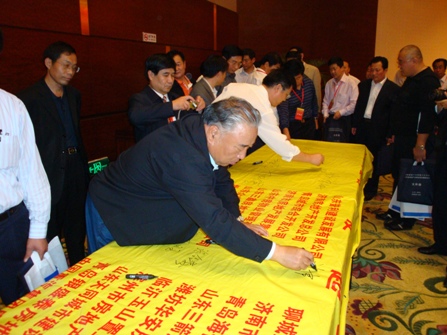 我公司总经理与(原公司董事长)刘建业副会长在全省房地产管理工作会议上共同签署诚信宣言